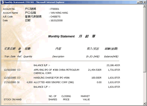 | 如阁下欲查阅月结单,阁下必须登入阁下之网络股票买卖户口 (请参照此用户手册之第2.2项); | |