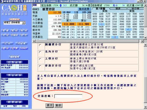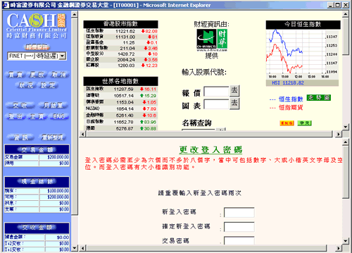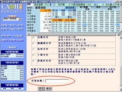 | 交易密码为阁下以执行下单,现金及股票交收及更改设定等 功能必须输入之密码。 | ||||||||||||||||||||||||