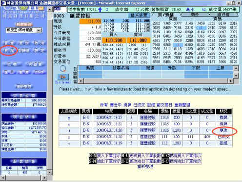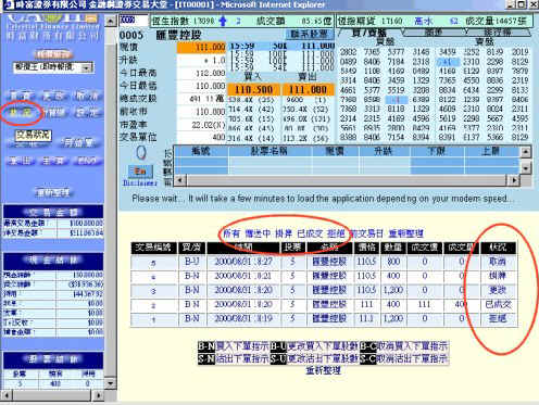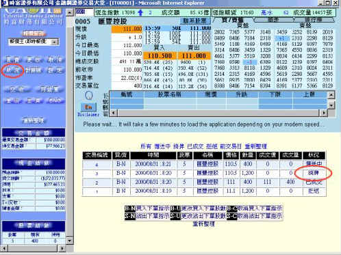 | 进入"金融网"交易网页后按"状况",于"状况"网页内,阁下之指令将按以下六种情况分类: |