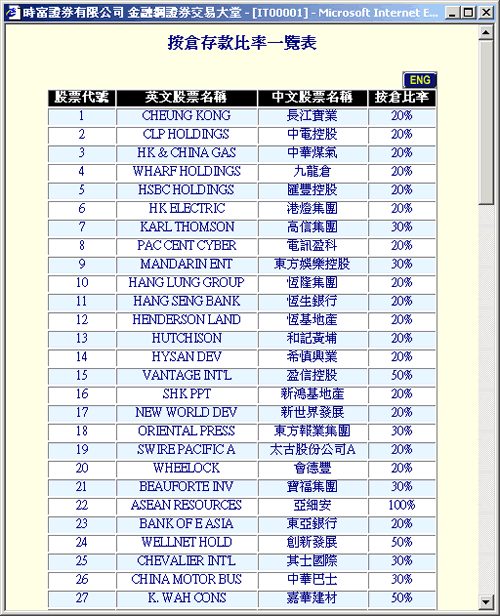 | 步骤 2 | 查阅股票的"按仓存款比率" (即最少投资某股票的百分比)。 |