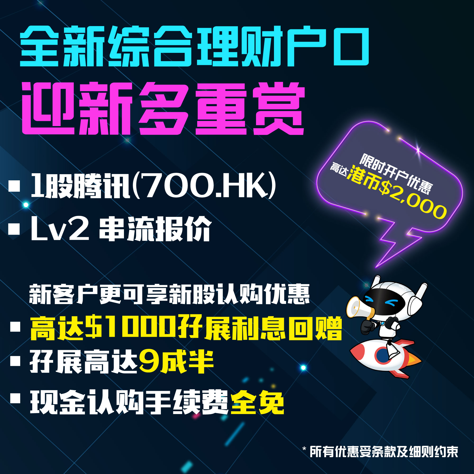 • 高达$1000 孖展利息回赠 • 孖展高达9成半 • 现金认购手续费全免